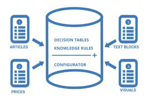 A product configurator must of course be filled with products. Various parameters are entered for each product, which can include: length, width, weight, color and material. Do not fixate yourself on this because all kinds of parameters are possible. The real power of a product configurator lies in the possible variations of a product and especially in the impossibilities. Which combinations cannot be made, for whatever reason. By recording this in the knowledge rules, the product configurator always puts together 100% correct products.